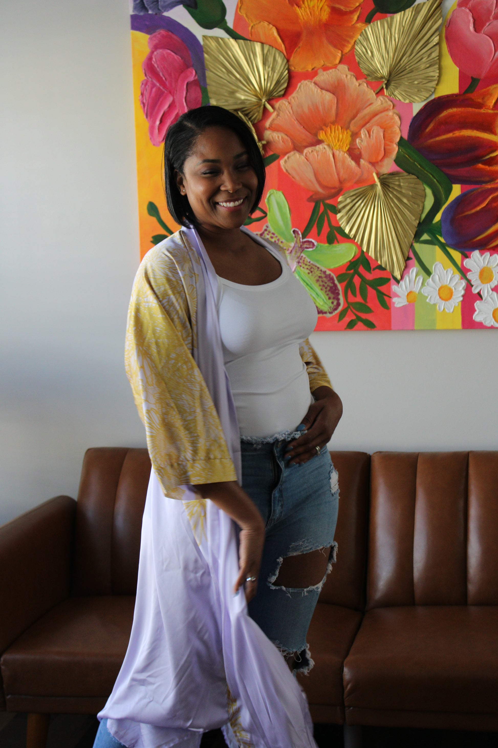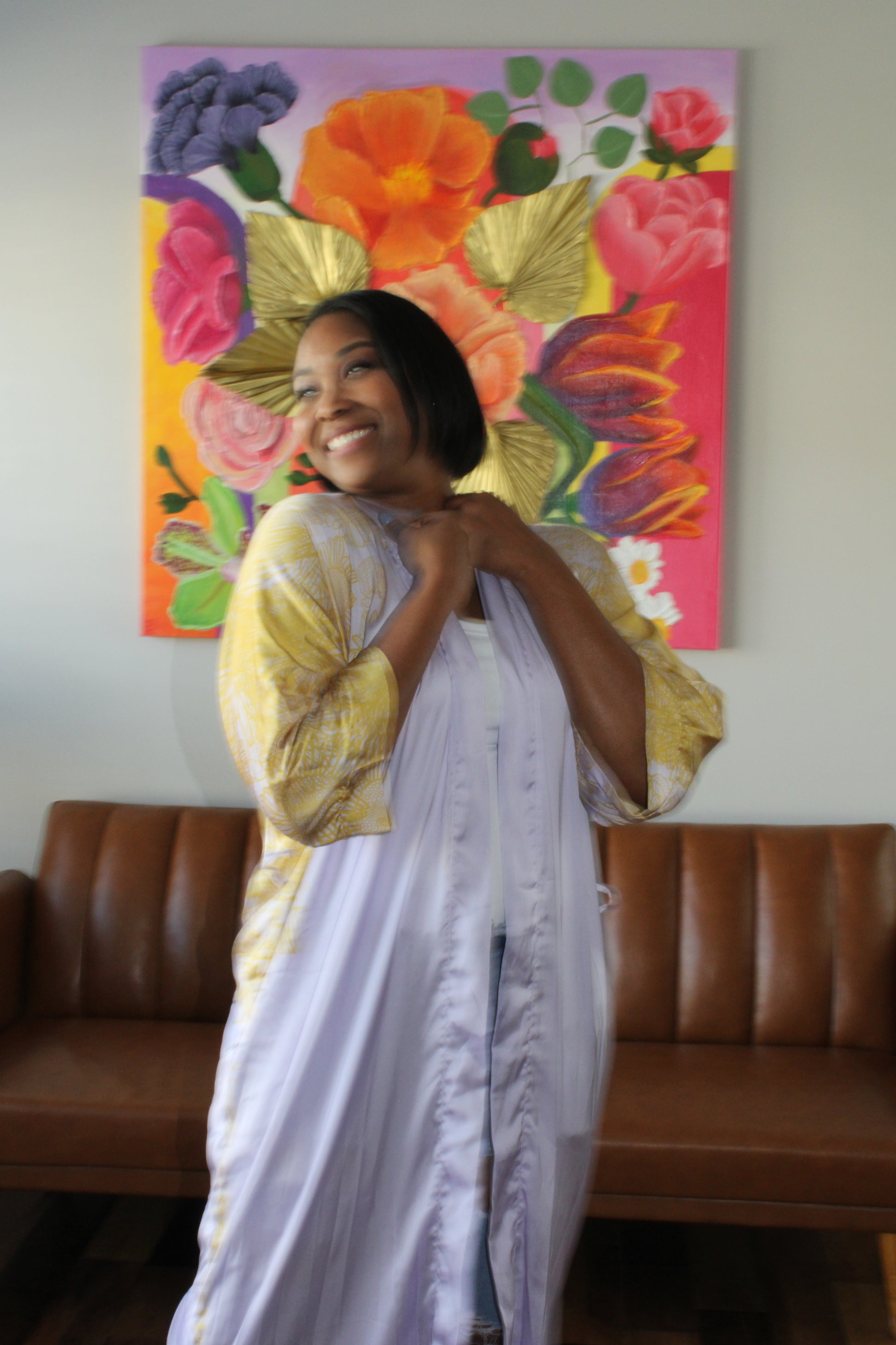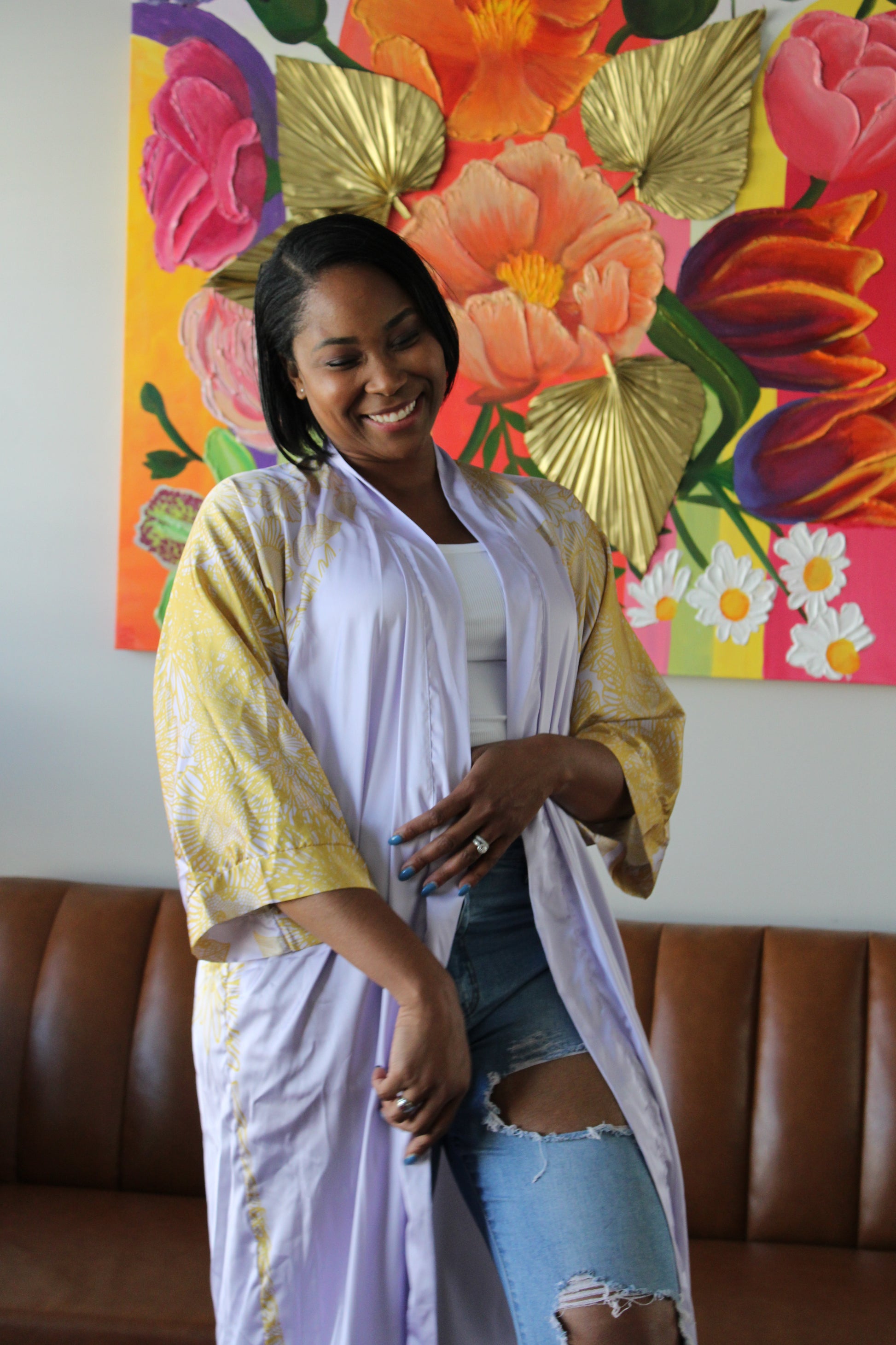 Lavender Sunflowers Long Silk Kimono: A Classic Design Inspired by Nature