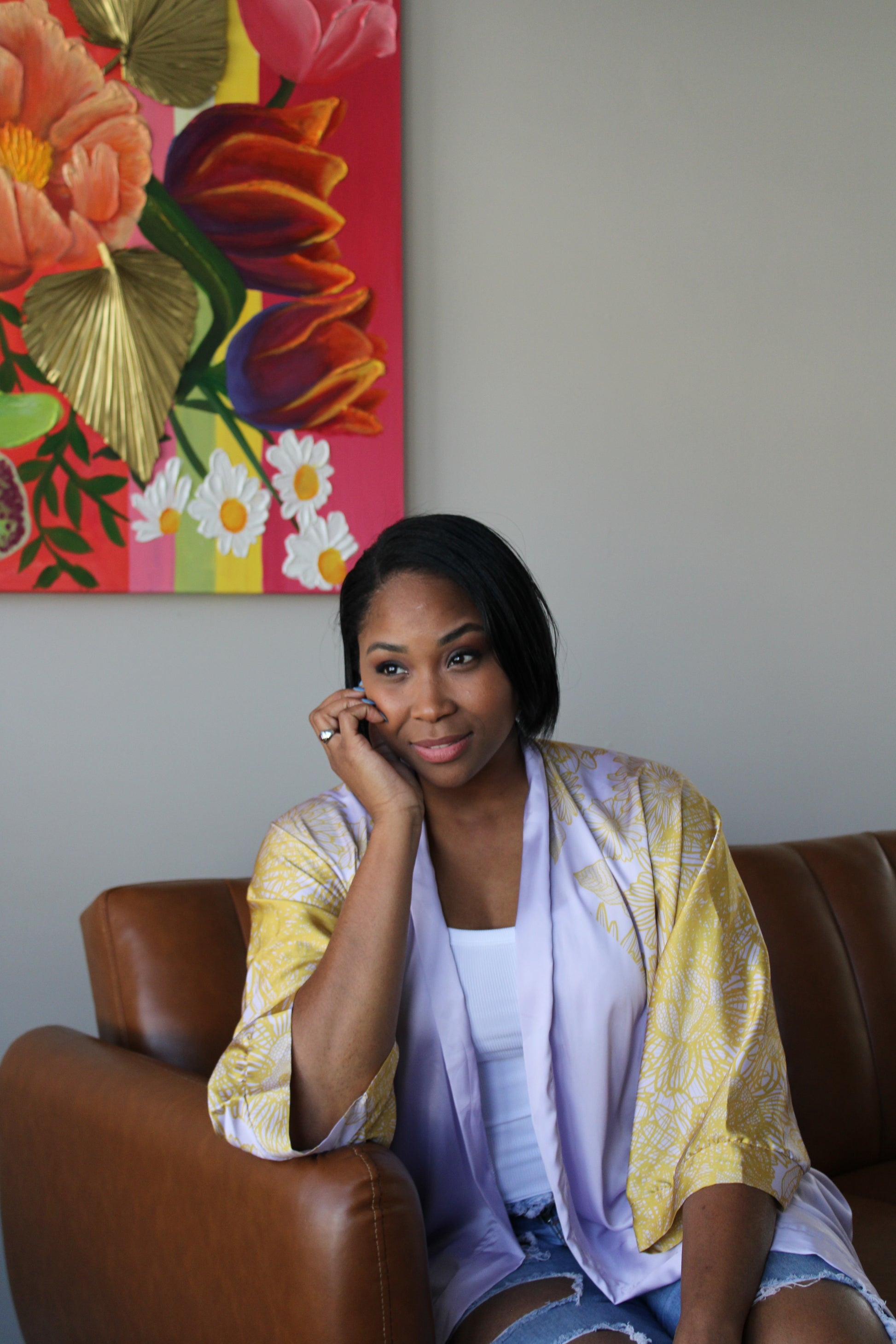 Introducing our Lavender Sunflower Kimono. This unique print is more than just a design—it's a masterpiece created with you in mind. Introducing the All-Over Print Women's Satin Kimono Long Robe. Beatifully crafted, this medium-weight robe soft material on your skin. The design combines style and comfort, purposefully fashioned to reflect your unique journey and aspirations.