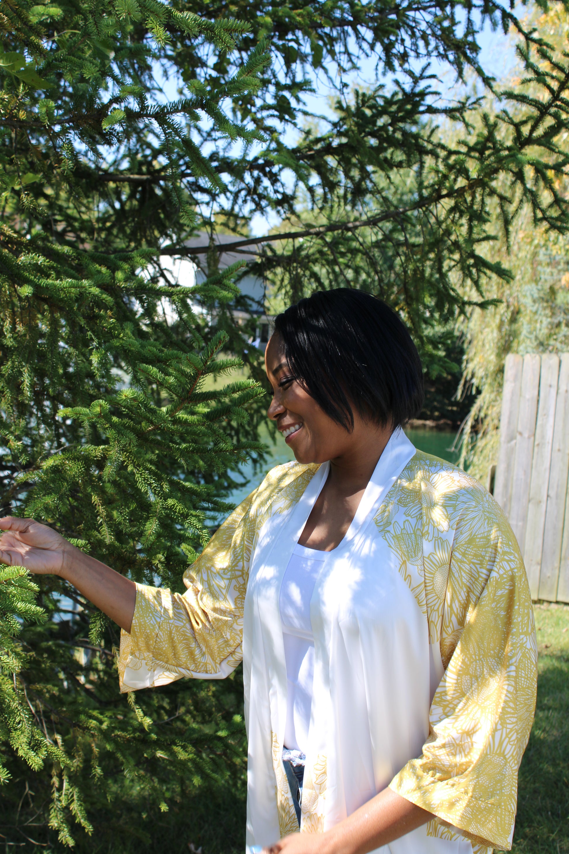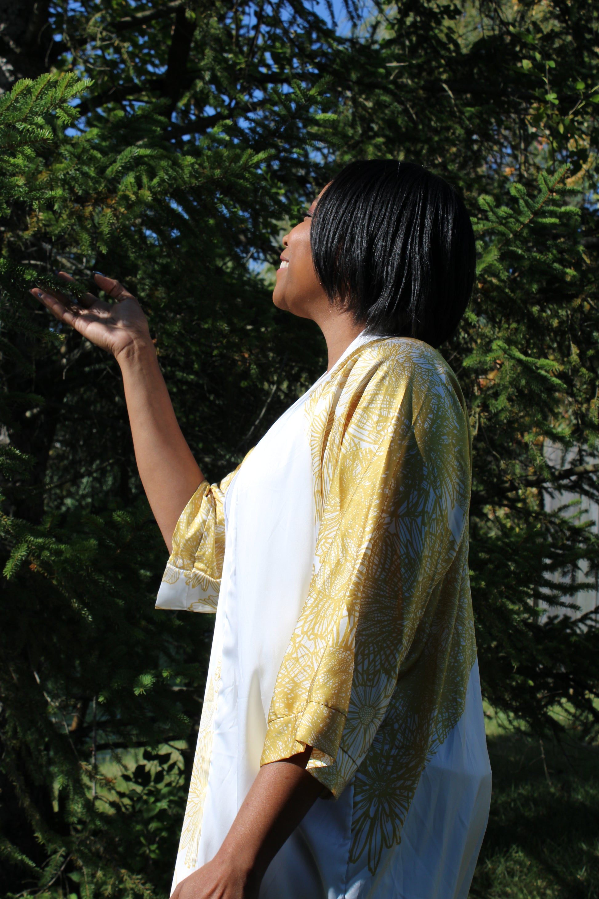 White Sunflowers Long Silk Kimono: A Classic Design Inspired by Nature